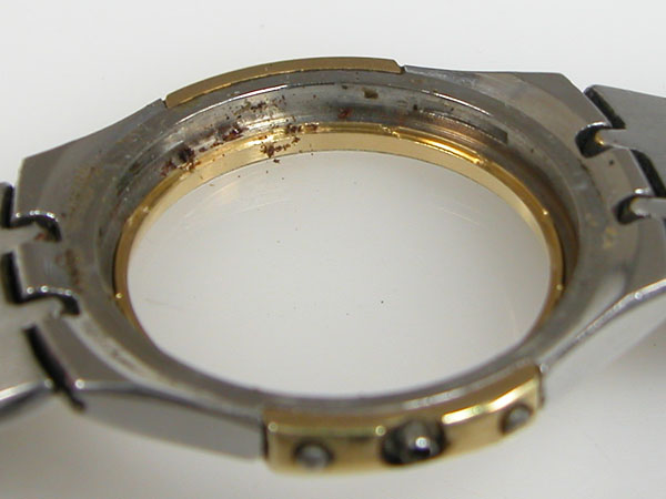 ベゼルの隙間の汚れ。これこそ洗浄コースならではの効果が出ます。