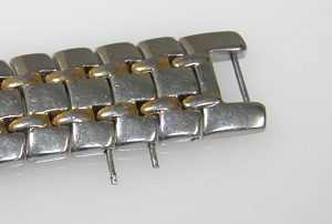 ステンレス無垢バンドにブレスバックル。