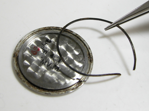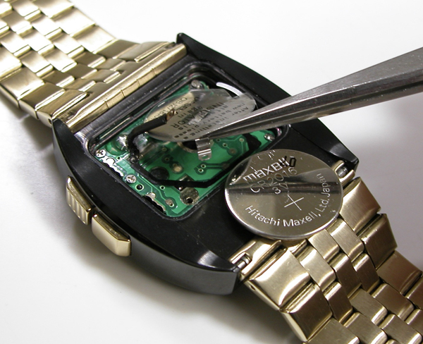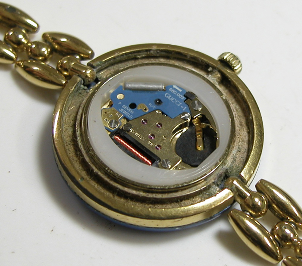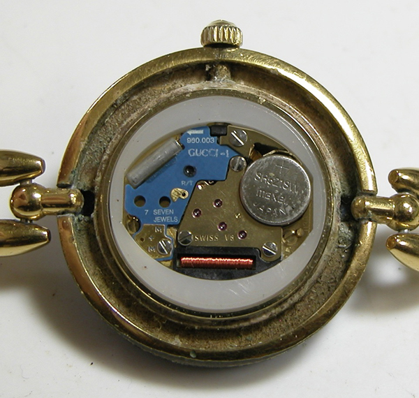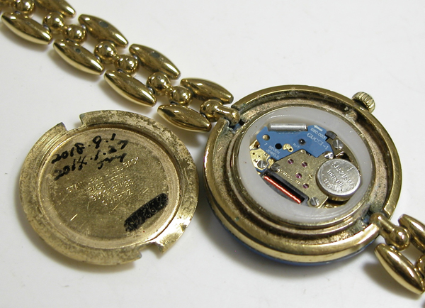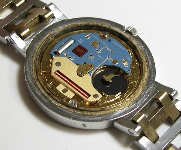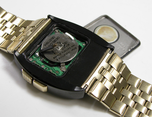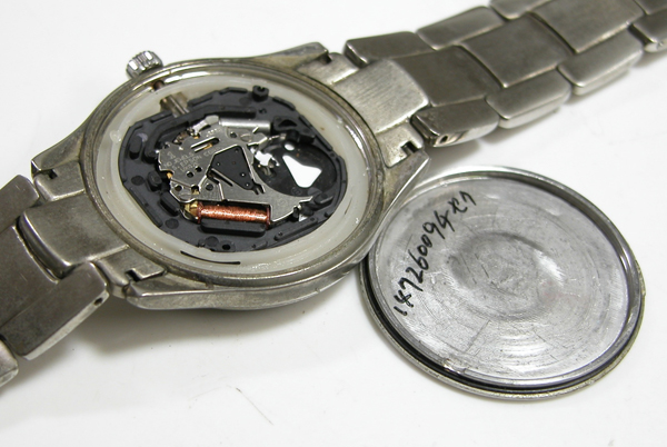 裏蓋を開けると電池がムーブメントを覆っています。