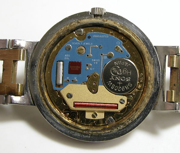 これがムーブメントですがEPSONムーブメント。電池が入っていない。これは私には「不動であった事」を示しております。