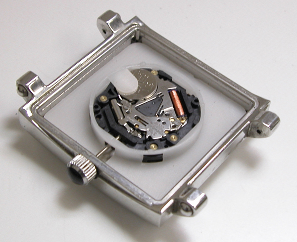 裏蓋を開けるとスペーサーが電池を覆っています。