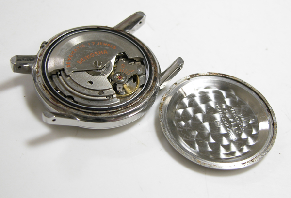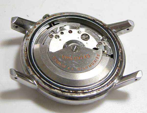ムーブメント拡大。ケースの洗浄依頼ですから、それなりにサビが見られます。