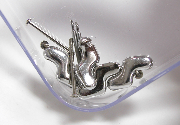 ラグ部の革ベルトとのジョイントコマとラグ部ピン。バネ棒も外して洗浄します。
