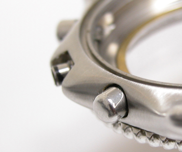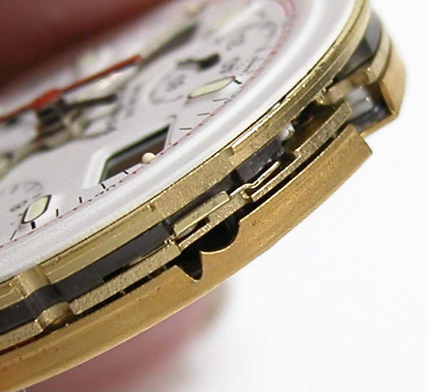 反対側もチェックします。問題の8時位置ですが。堅いというか”カクン!”というバネが無く押し込まれてしまう。これはプッシュボタンでは無く「内部のレバーの金属疲労」。