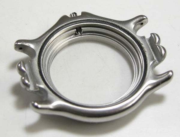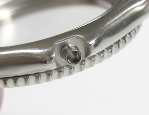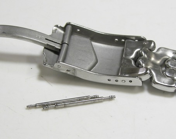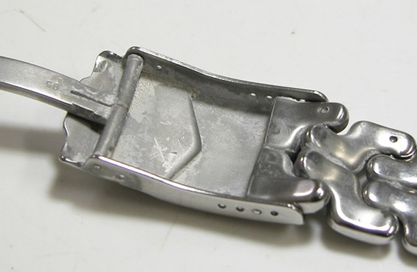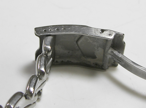 ステンレス無垢バンドに三つ折れダブルロック。