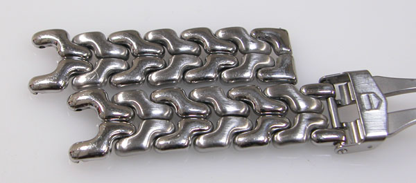 ステンレス無垢バンドに三つ折れダブルロック。