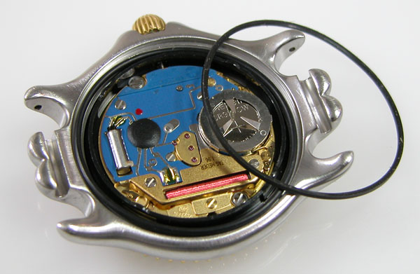 綺麗になったケースにムーブメントを戻して電池格納部をチェックします。
