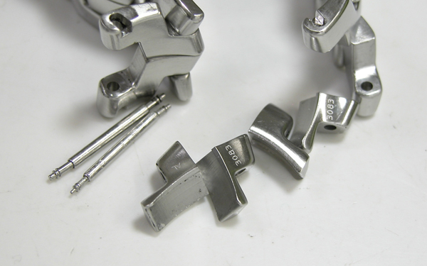 ステンレス無垢バンドに三つ折れバックルはダブルロック。