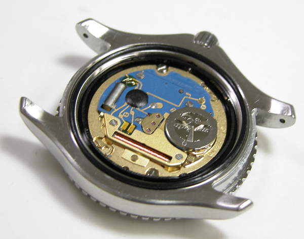外したパーツを戻していき電池を入れて動作確認。パッキンにシリコン塗布をしてケースに戻します。