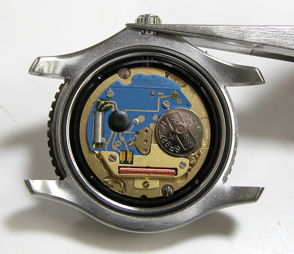 綺麗になったケースにムーブメントを戻して電池格納部をチェックします。