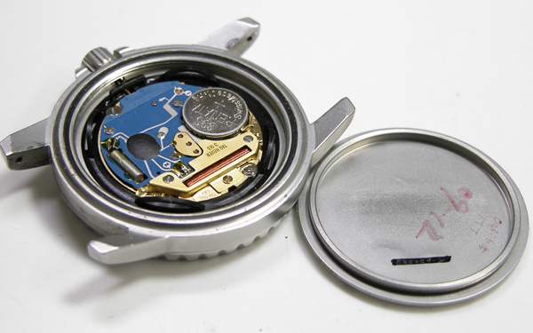 綺麗になったケースにムーブメントを戻して電池格納部をチェックします。