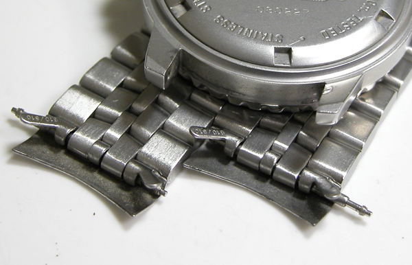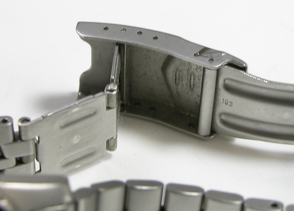ステンレス無垢バンドに三つ折れダブルロック。