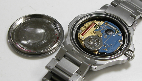 綺麗になったケースにムーブメントを戻して電池格納部をチェックします。