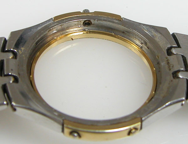 ベゼルの隙間の汚れ。これこそ洗浄コースならではの効果が出ます。