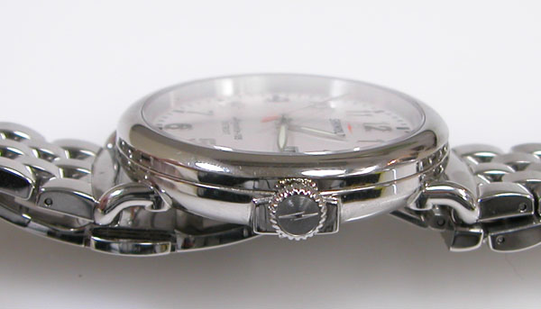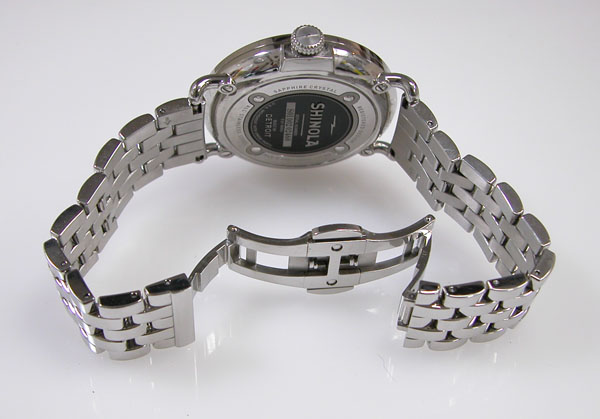 ステンレス無垢バンドに両開きバックル。