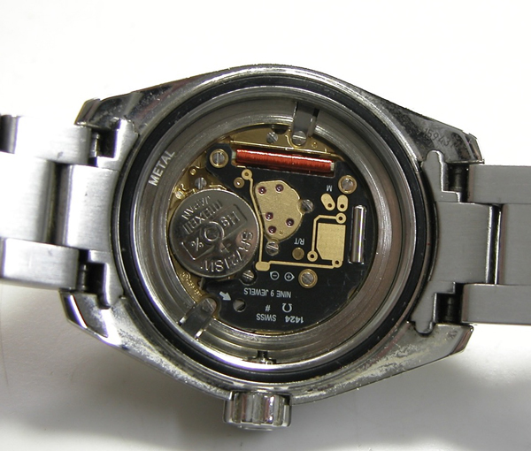 裏蓋を開けると耐磁プレートがムーブメントを覆っています。