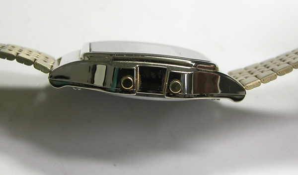 ステンレス無垢バンドに両開きバックル。