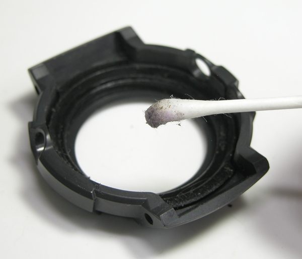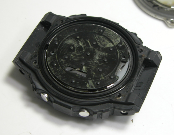 この程度の汚れはあるものの。ベゼル・カバー弾力は劣化しており。洗浄したら即、加水分解の状態です。