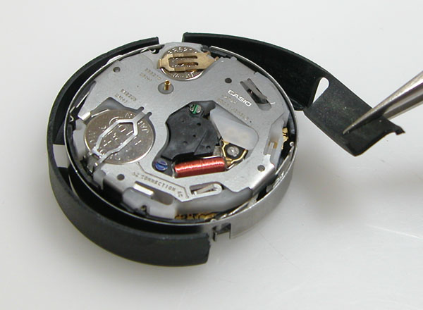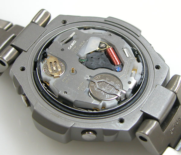 これがムーブメントで。電池交換もご自分で済ませたがプッシュボタンが効かないと。