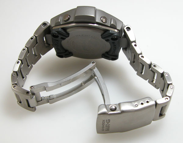 チタン無垢バンドに三つ折れプッシュバックル。