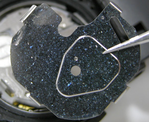 一昼夜乾燥させます。これが取り出した文字盤&ムーブメント。