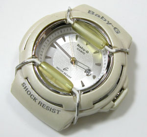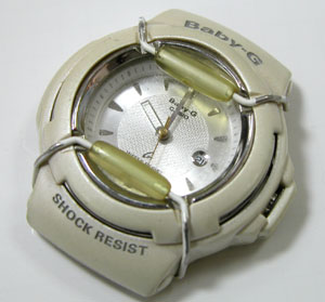 カバーを被せて。 ガードを取り付けるのみ!しかし・・・この腕時計使用中に時間が遅れたら・・・どうすのか?クォーツだから狂わない事が前提?誰か!教えてぇ〜〜!!