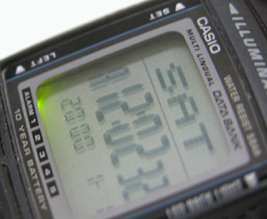 カシオ腕時計(CASIO)DATA BANK/DB-36/2515電池交換です。表示は出ておりますがライト点灯で表示が薄くなりますから電池交換です。