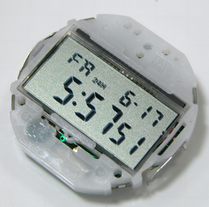 ポロリとムーブメントが出て来ます。この腕時計もお客様は、ソバでお待ちですから電池交換したのですが、表示が出たので裏蓋を閉めると表示が消えます。