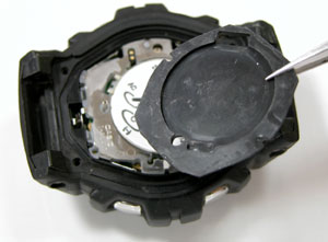 先ずはゴムのスペーサーを外しますが、これはピンセットで摘み出すのみ。慣れていないとスペーサーの入っていた向きが分からなくなりますから、外すときには良く見て記憶しておいてください。スペーサーの向きを間違って裏蓋を閉めれば隙が出来て防水性能に影響が出ます。