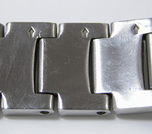 ステンレス無垢バンド三つ折れプッシュバックル。ベルト調整は・・?