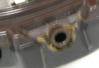 ネジを外すとねじ穴も錆びて、裏蓋がへばりついているのが分かります。