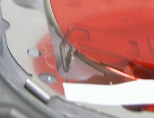 ハイ、外れました。電池押さえにフィルムが貼り付いております。