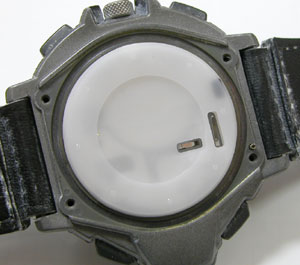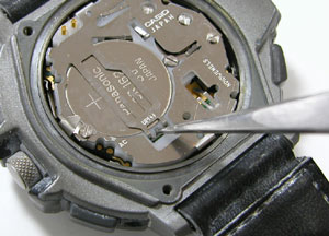 デジタル腕時計は電池交換の後"AC端子”と電池のプラス側をショートさせて腕時計をリセットします。リセットをした後は必ず時間表示されているか確認してください。表示がされていない場合はリセット作業をやり直してください。