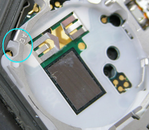 ここから押さえを外します。こうですね。電池はCR2016。