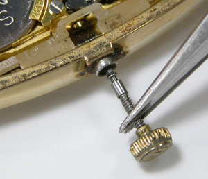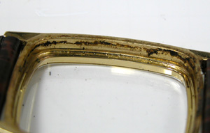 竜頭を抜いて。ケースの内側をチェックしますが、ここまで湿気が及んでいるとは。