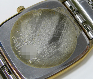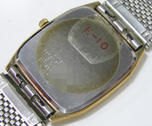 こちら文字盤キャリバー。裏蓋は”はめ込みタイプ”でシールが貼ったまま。