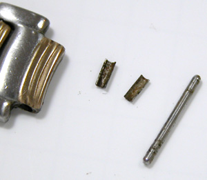 ピンを抜いてみれば・・・割れて出てきました。こういうピンが錆びて割れたので抜けたものでした。