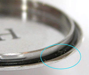 ここまで拡大すれば分かります。隙間と言うかカット面のみ。意外に開けるのは簡単でしたが、この位置が見つけられなければおそらく腕時計は傷だらけになっていたでしょう。開け口にこだわりすぎて、ムーブの撮影忘れましたm(..)m