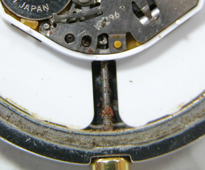このサビがムーブメントに落ちてよく腕時計が止まらなかったものです。サビとホコリでビッシリ。
