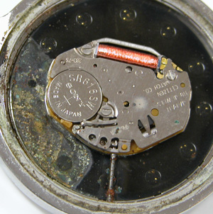 腕時計を持つ人が全て腕時計の内部に興味は持ちません。こういう状況の腕時計は、わたしら仕事で電池交換している者にとっては10人に一人くらいの確率です。珍しはない状態です。特に高齢者の方が持ち込まれる腕時計はこの程度の状況になっている事が多いです。