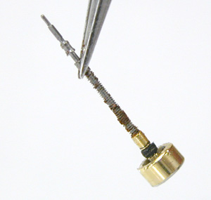 竜頭もピンセットでは抜けません、かなりの力で引き抜きます。巻芯の先端までは及んでおりません。