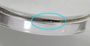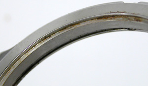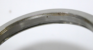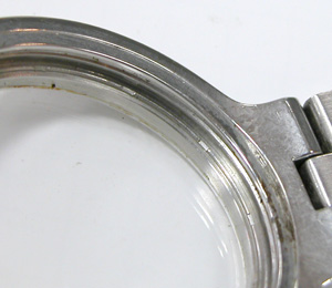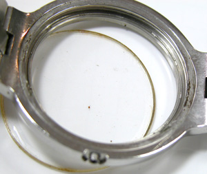特にインデックスが錆びていた位置のガラス接触面のサビが凄い。この部分は完全に隙間が出来ている状態だったのでしょう。反対側は綺麗な方です。