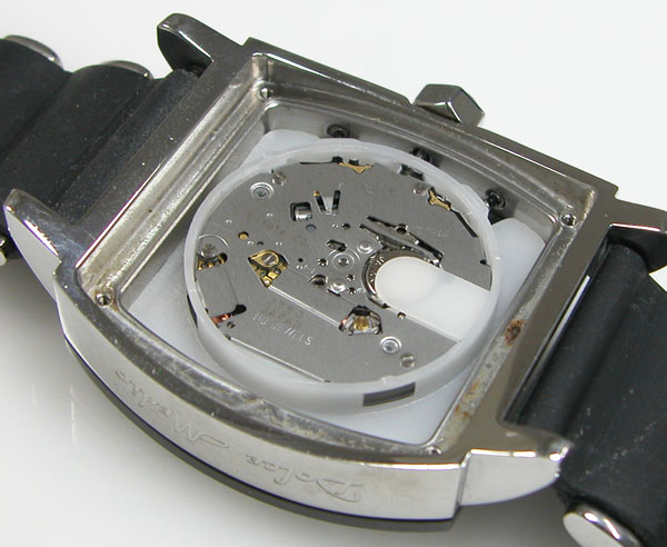 裏蓋を開けるとスペーサーが電池を覆っています。