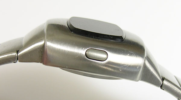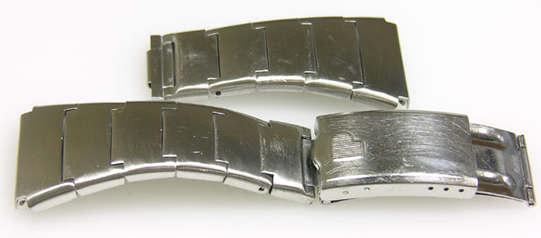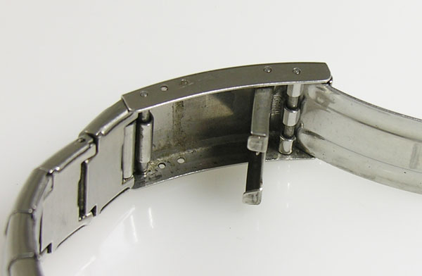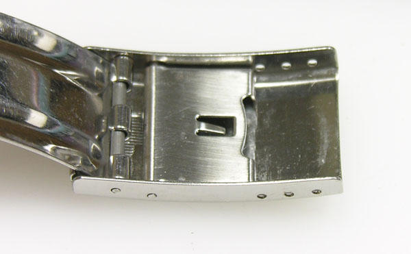 ステンレス板巻きバンドに三つ折れバックル。
