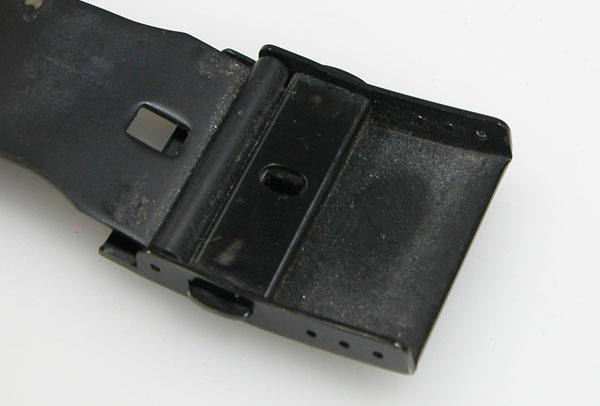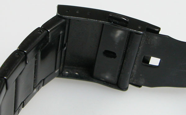 ステンレス無垢バンドに三つ折れプッシュバックル。