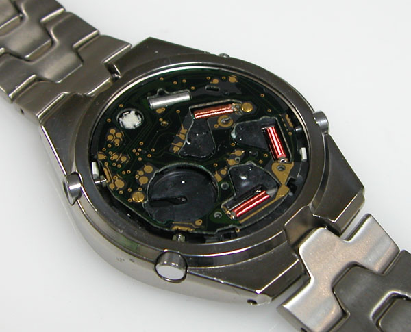 ムーブメント拡大。ムーブメント取り出しをしないと電池交換出来ない?