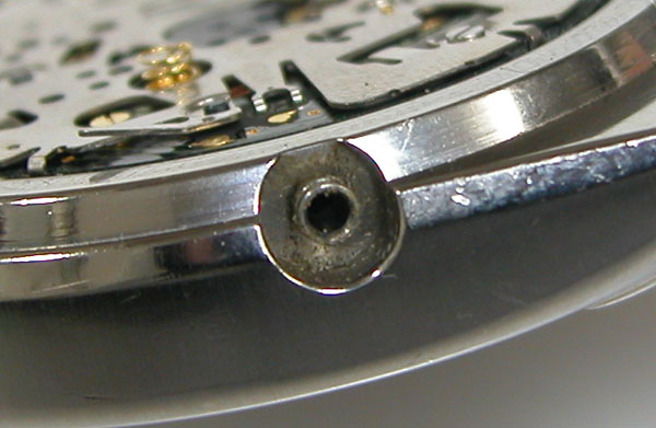 ムーブメントが現れます。この構造からも「電池交換することは前提に作られていない」。