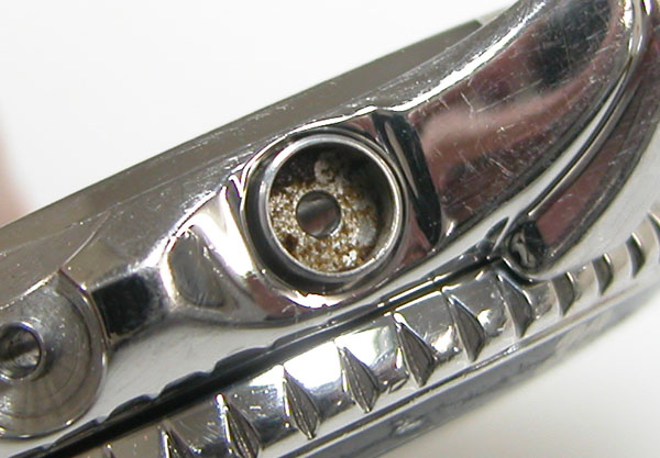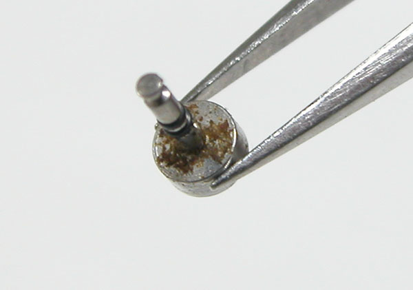 プッシュボタンの動きが悪いですからついでに修復。プッシュボタンを外して錆び具合をチェックします。