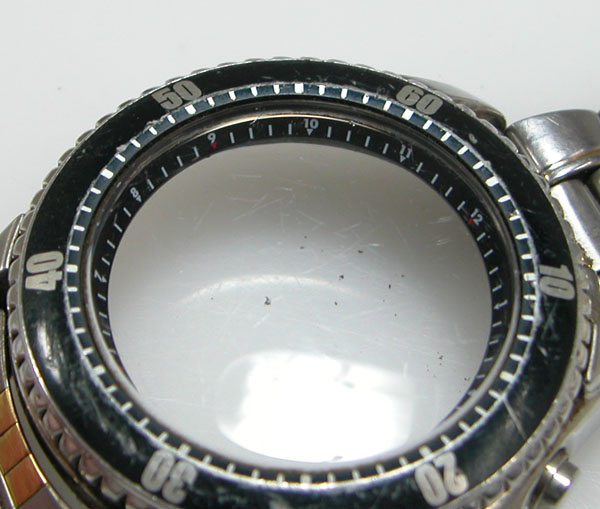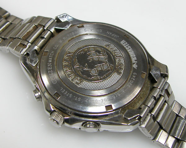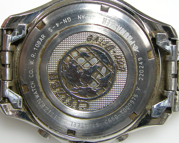 裏蓋はスクリューバックで裏蓋記載。こちらは結構、コテコテですから洗浄代金くらいは頂けそうです。