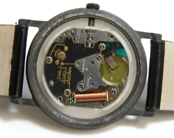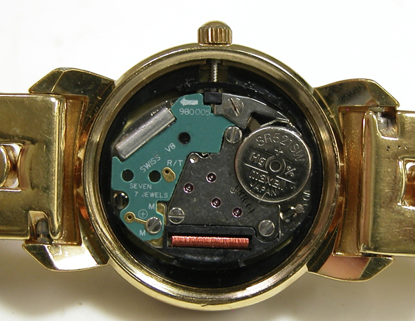 ムーブメント拡大。電池格納部をチェクしますが綺麗な状態で、電池を入れて動作確認。